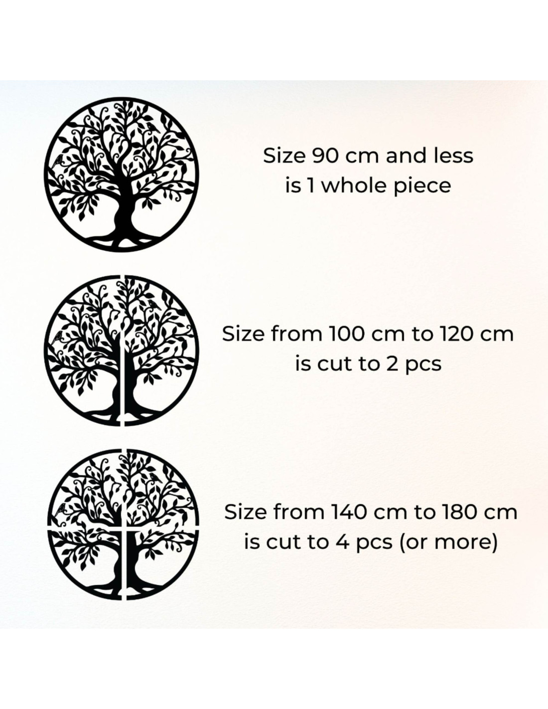 - Od 140 cm do 180 cm - dekoracja cięta na cztery części