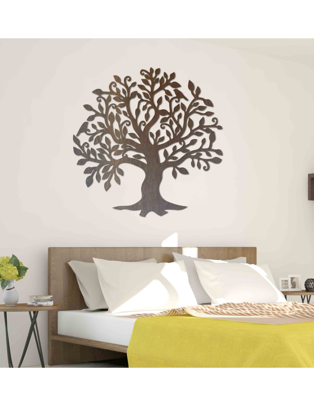 Drewniana dekoracja ścienna w kształcie drzewa życia symbolizuje wzrost, harmonię i połączenie z naturą, tworząc spokój w Twoim domu.