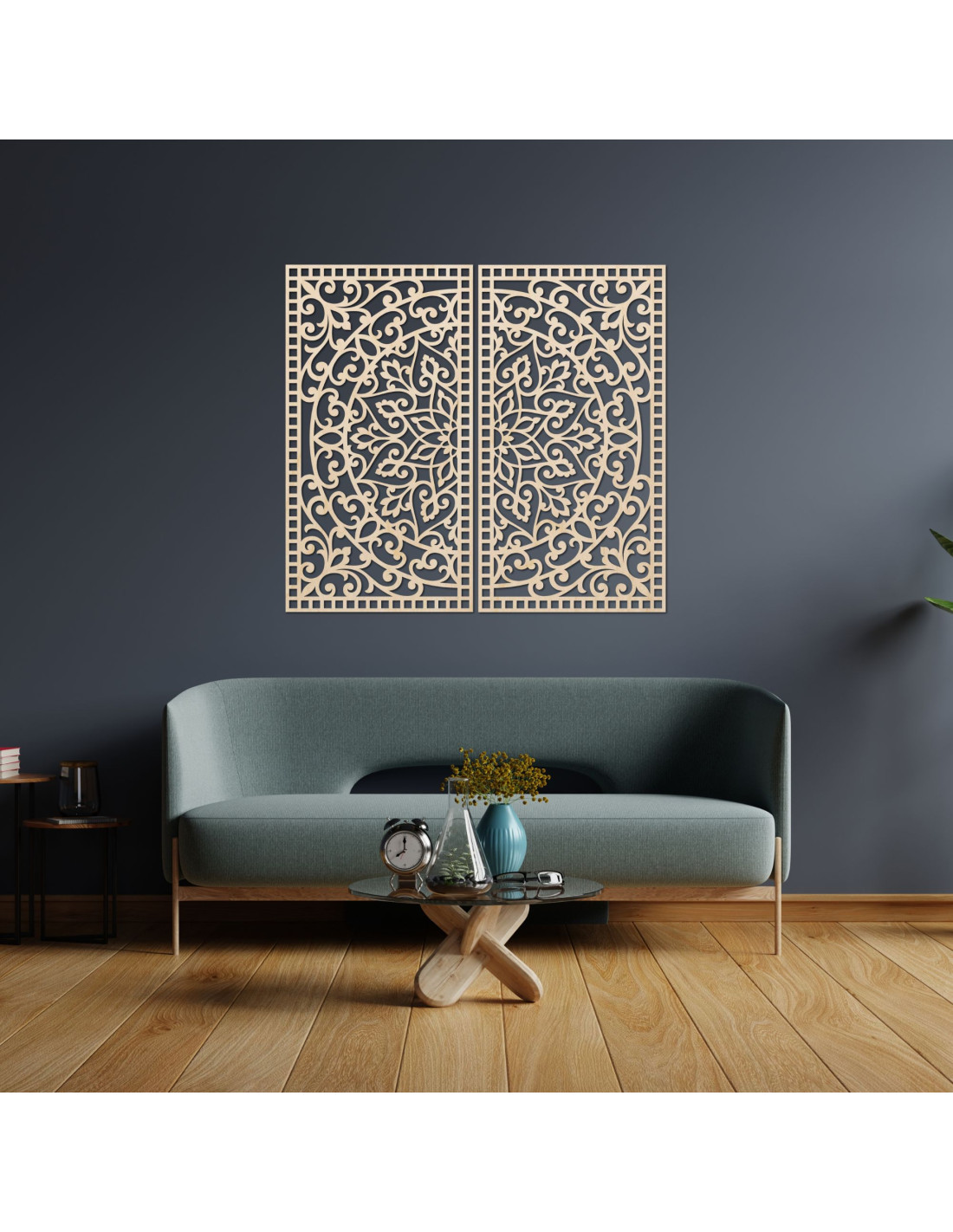 Drewniany obraz mandali, 2 elementy – Rzeźbiona dekoracja ścienna – FLOUFER