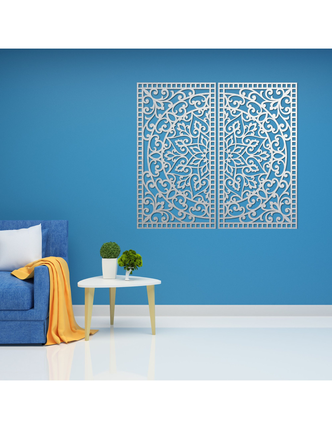 Drewniany obraz mandali, 2 elementy – Rzeźbiona dekoracja ścienna – FLOUFER