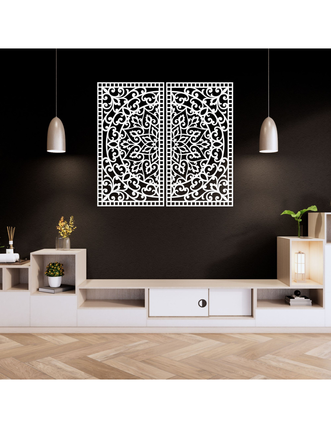 Drewniany obraz mandali, 2 elementy – Rzeźbiona dekoracja ścienna – FLOUFER