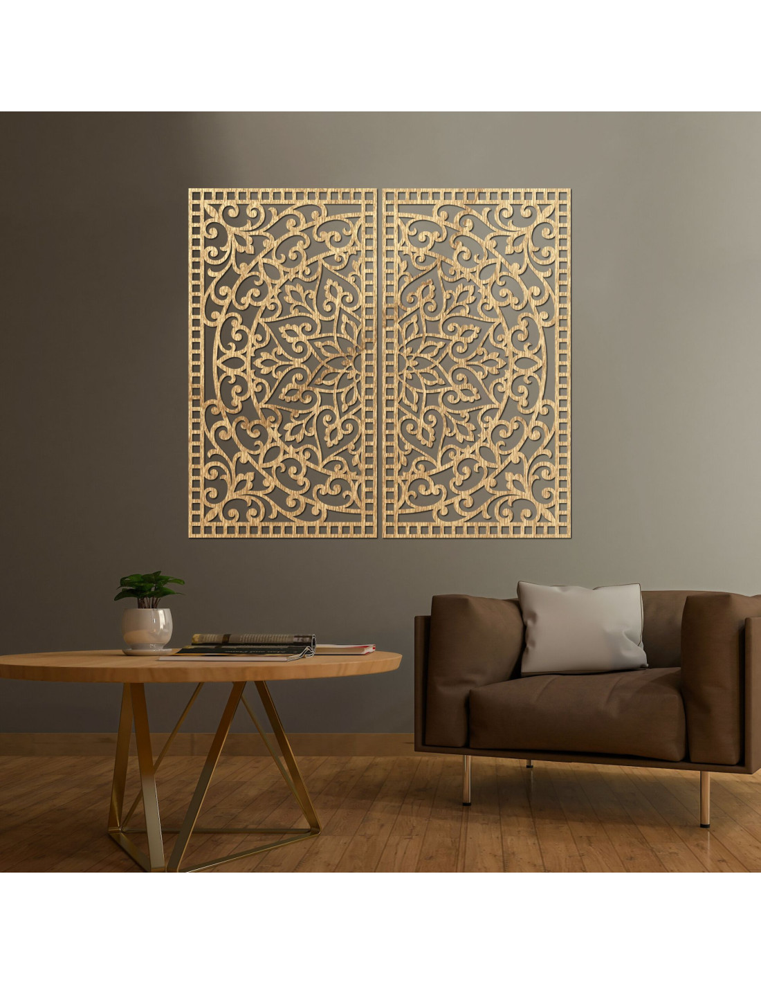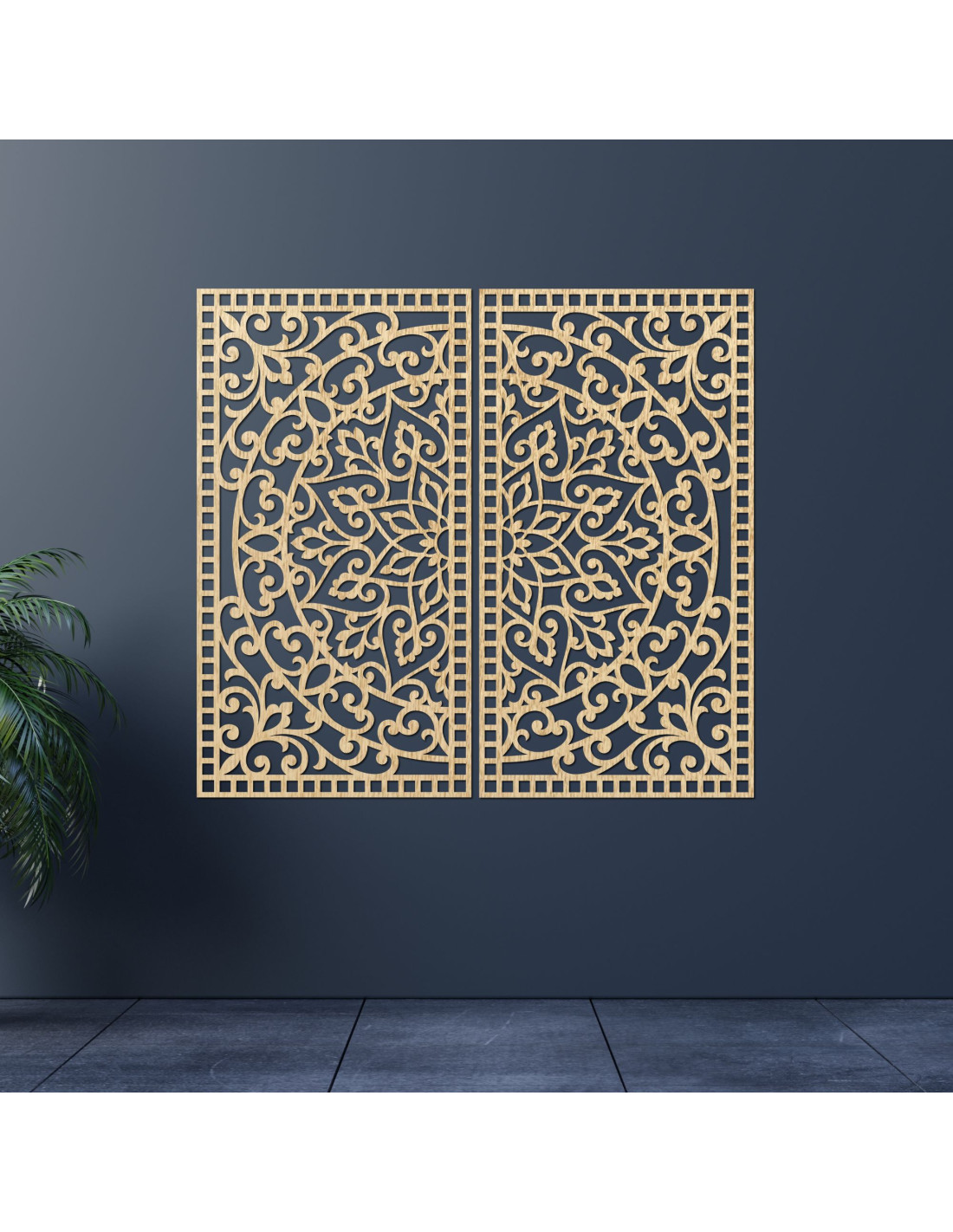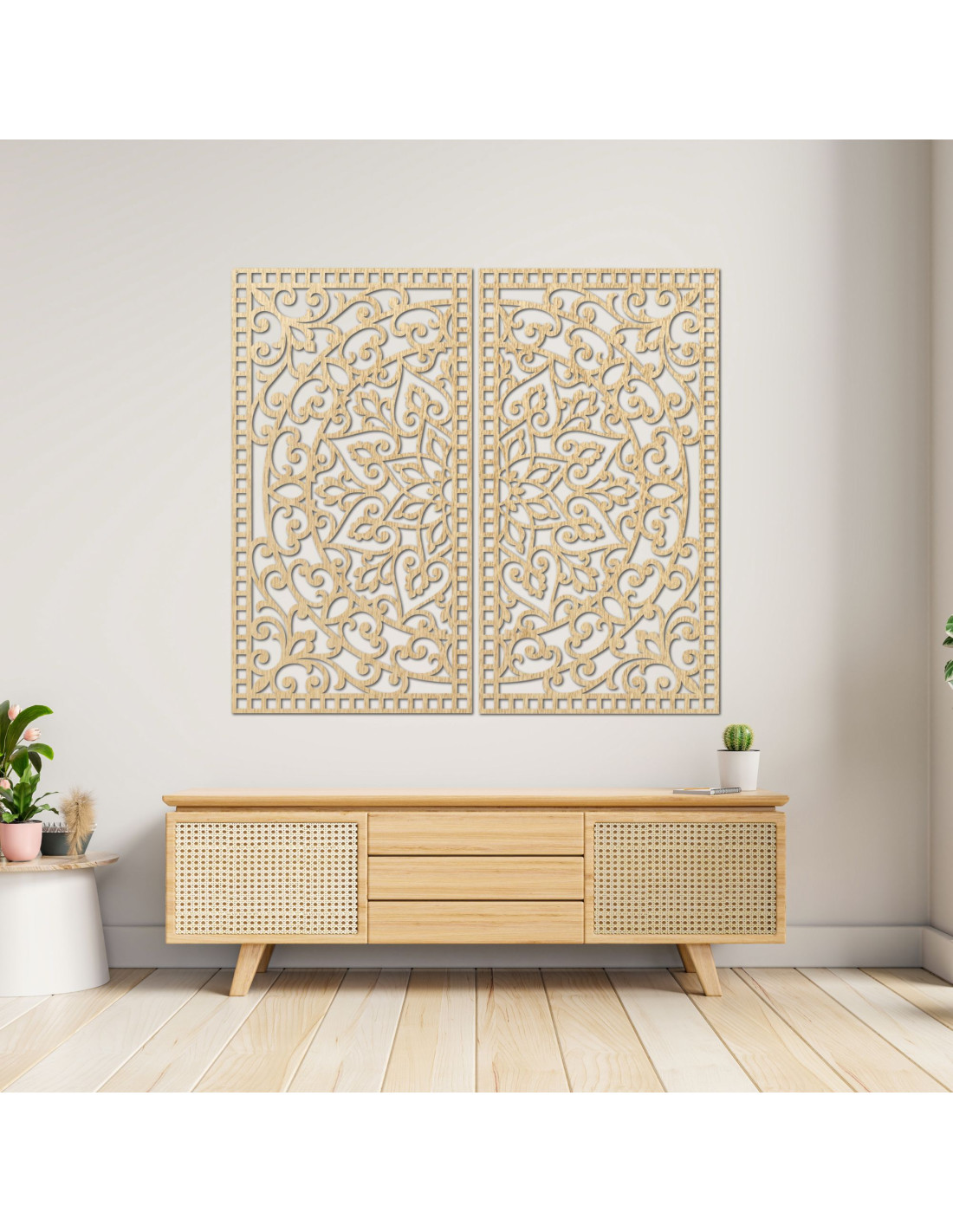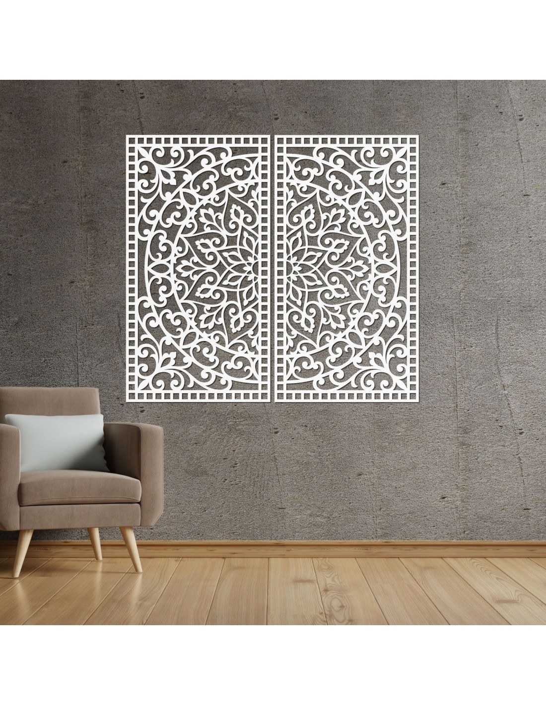 Drewniany obraz mandali, 2 elementy – Rzeźbiona dekoracja ścienna – FLOUFER