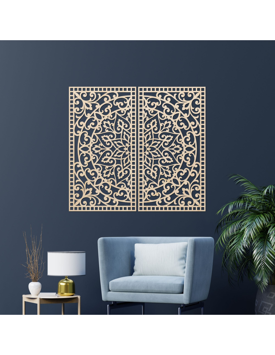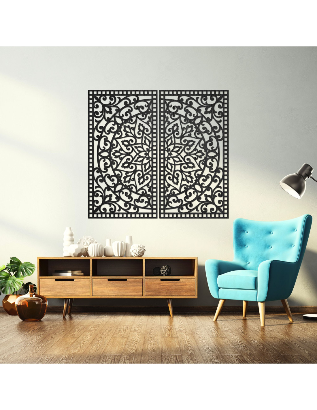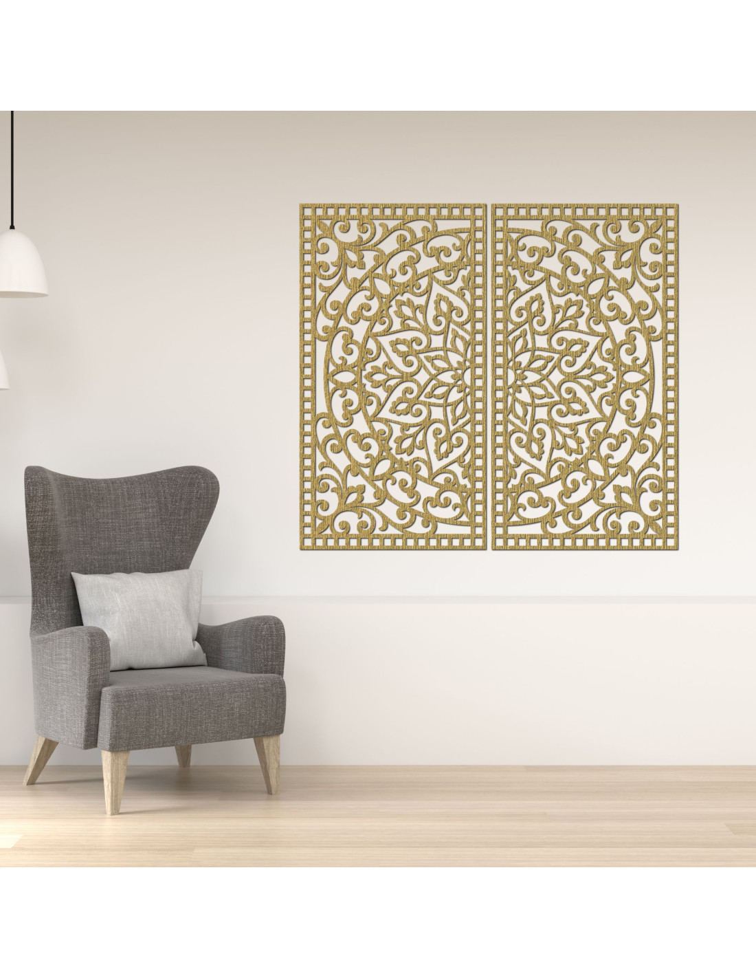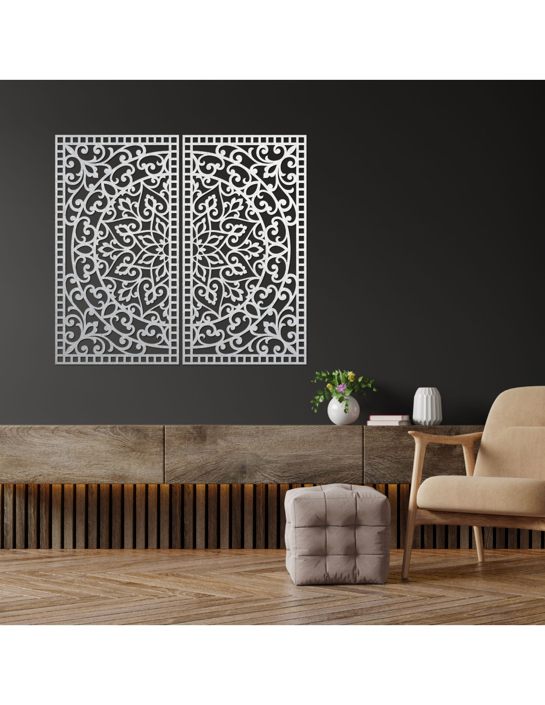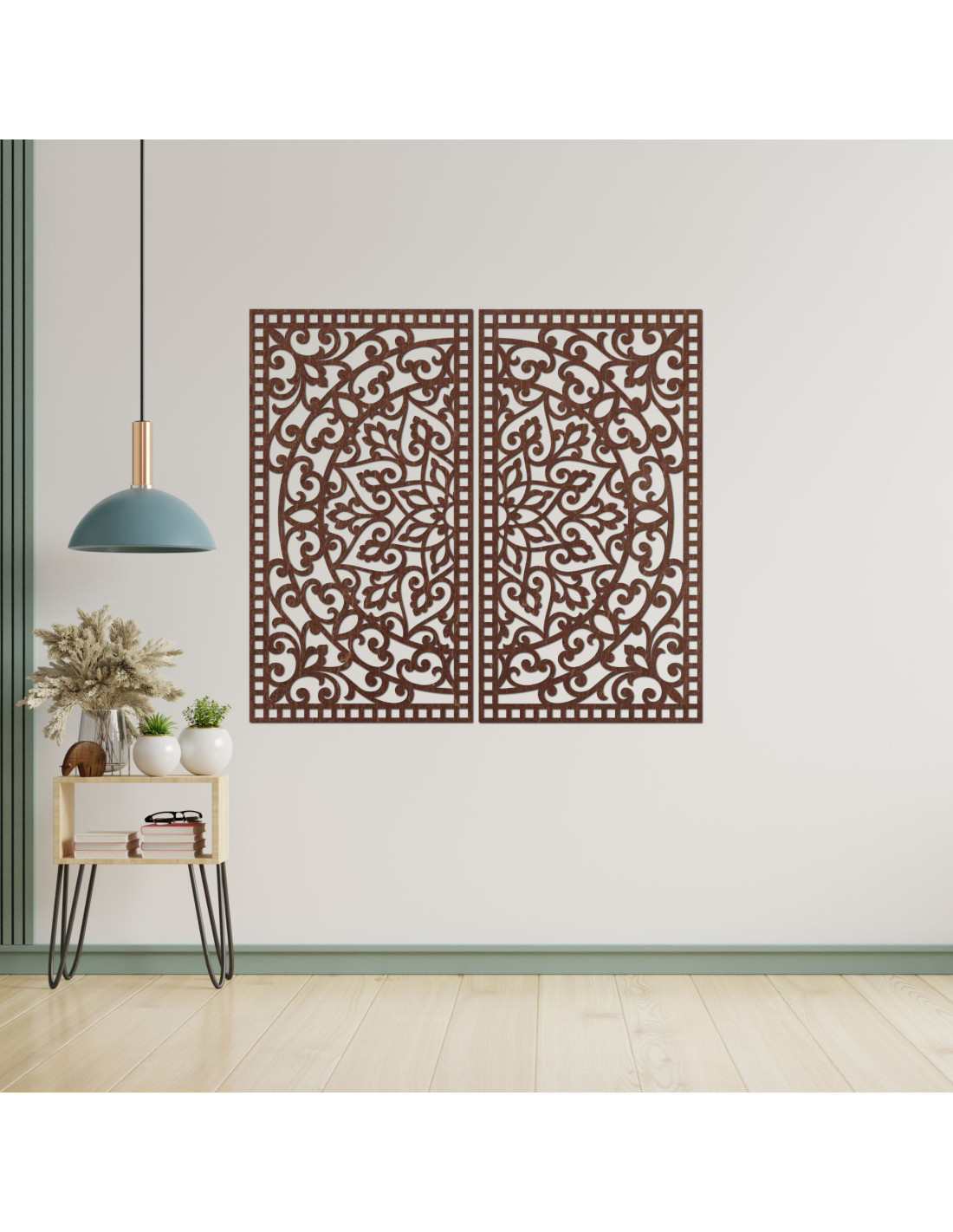 Drewniany obraz mandali, 2 elementy – Rzeźbiona dekoracja ścienna – FLOUFER