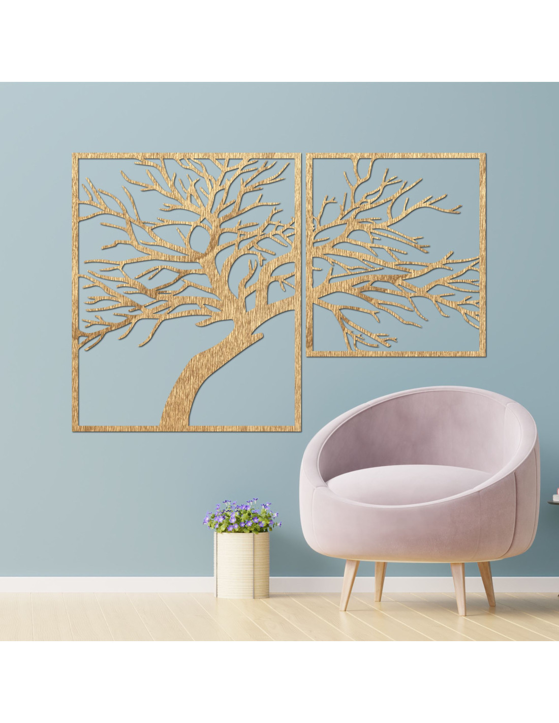 Dwuczęściowy obraz na drewnie Drzewo Życia – wyjątkowe dzieło sztuki łączące w sobie naturalne piękno, równowagę i nowoczesny design.