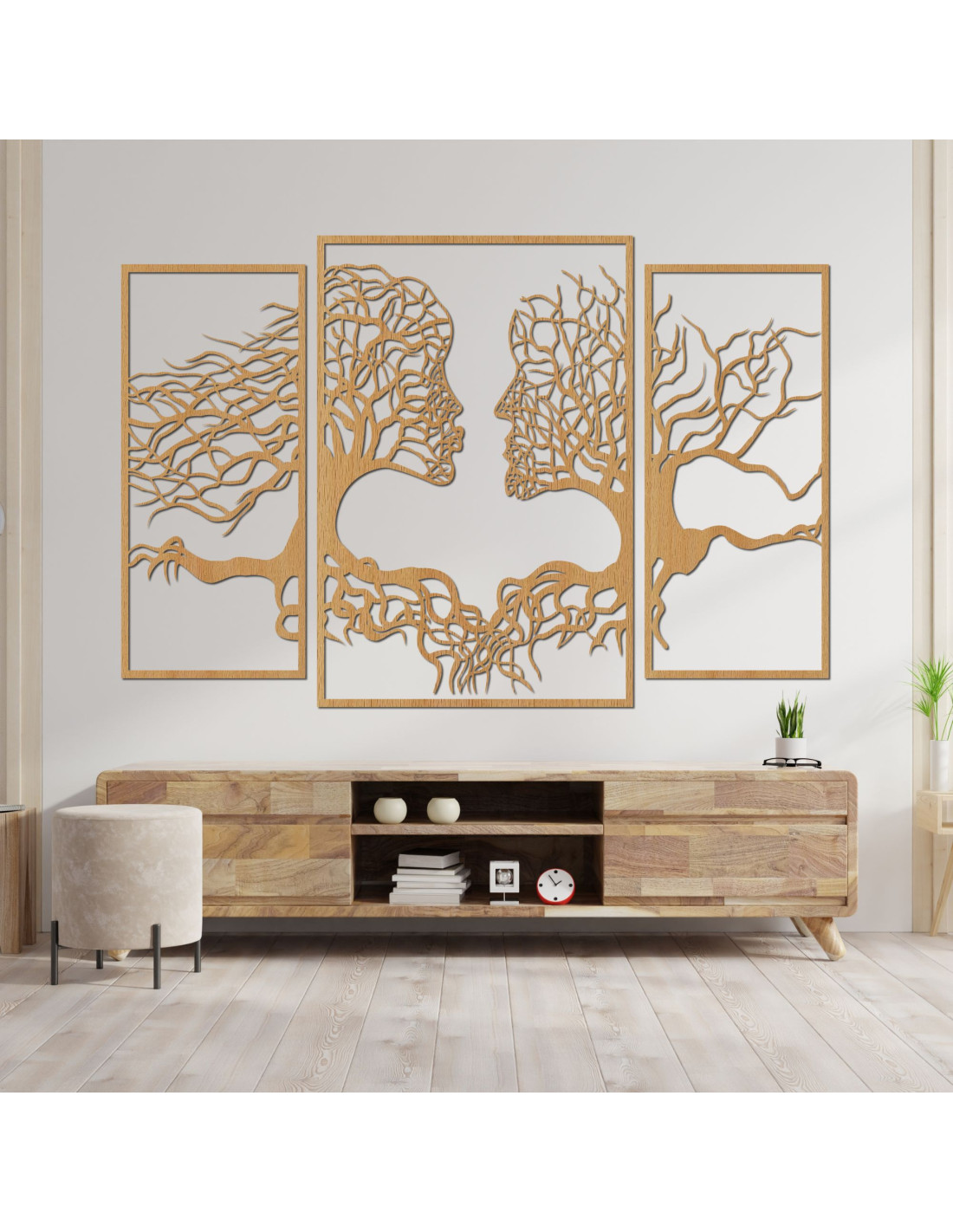 Trzyczęściowy obraz ukazuje wyjątkową więź między człowiekiem a naturą, gdzie sylwetki drzew naturalnie komponują się z ludzkimi twarzami . Delikatna kompozycja ma harmonijny charakter i zachęca do refleksji nad naszą relacją z naturą i ze sobą nawzajem.