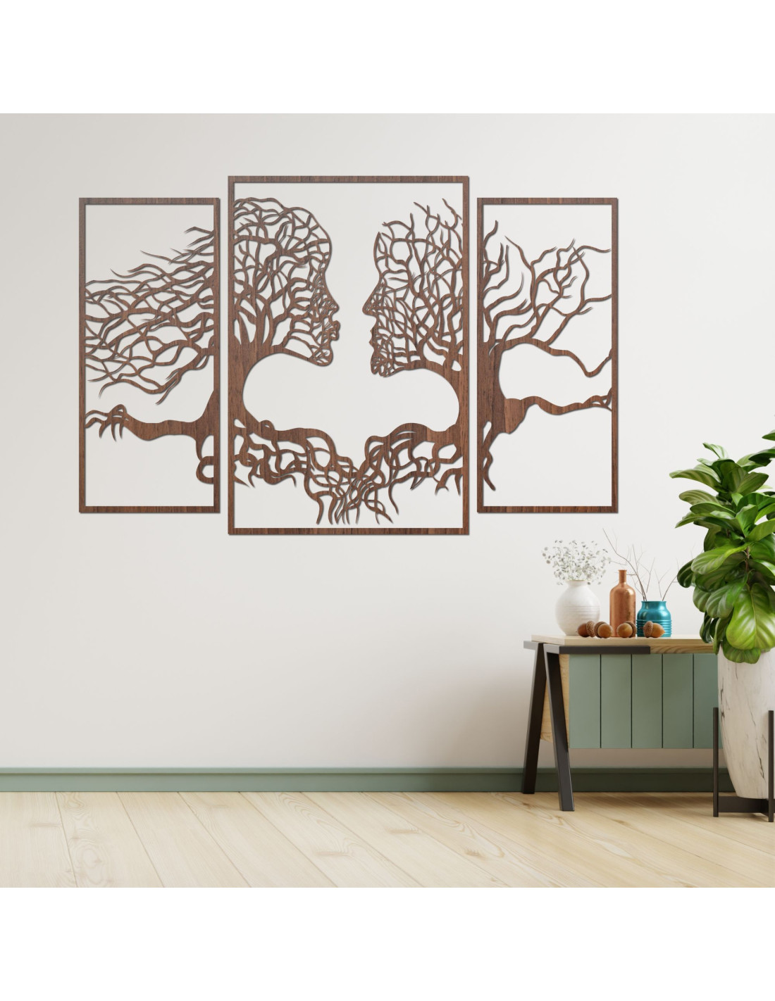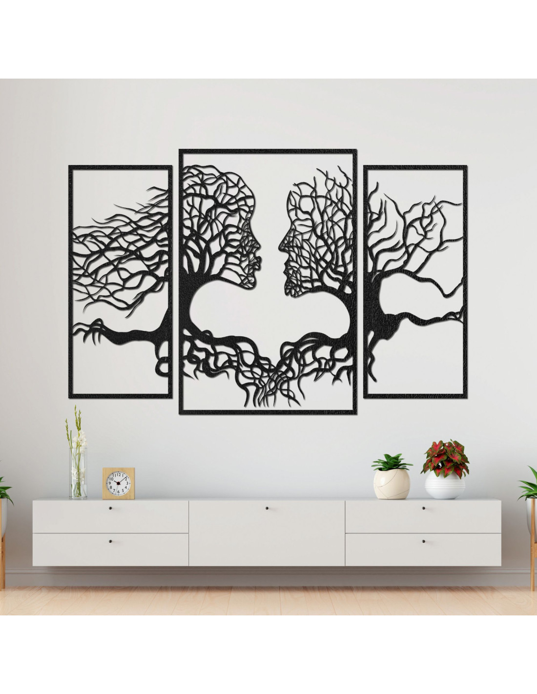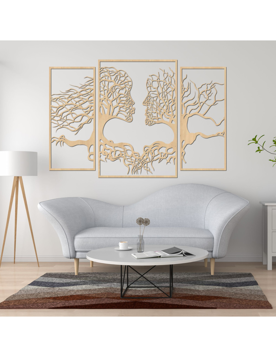 Trzyczęściowy obraz ukazuje wyjątkową więź między człowiekiem a naturą, gdzie sylwetki drzew naturalnie komponują się z ludzkimi twarzami . Delikatna kompozycja ma harmonijny charakter i zachęca do refleksji nad naszą relacją z naturą i ze sobą nawzajem.