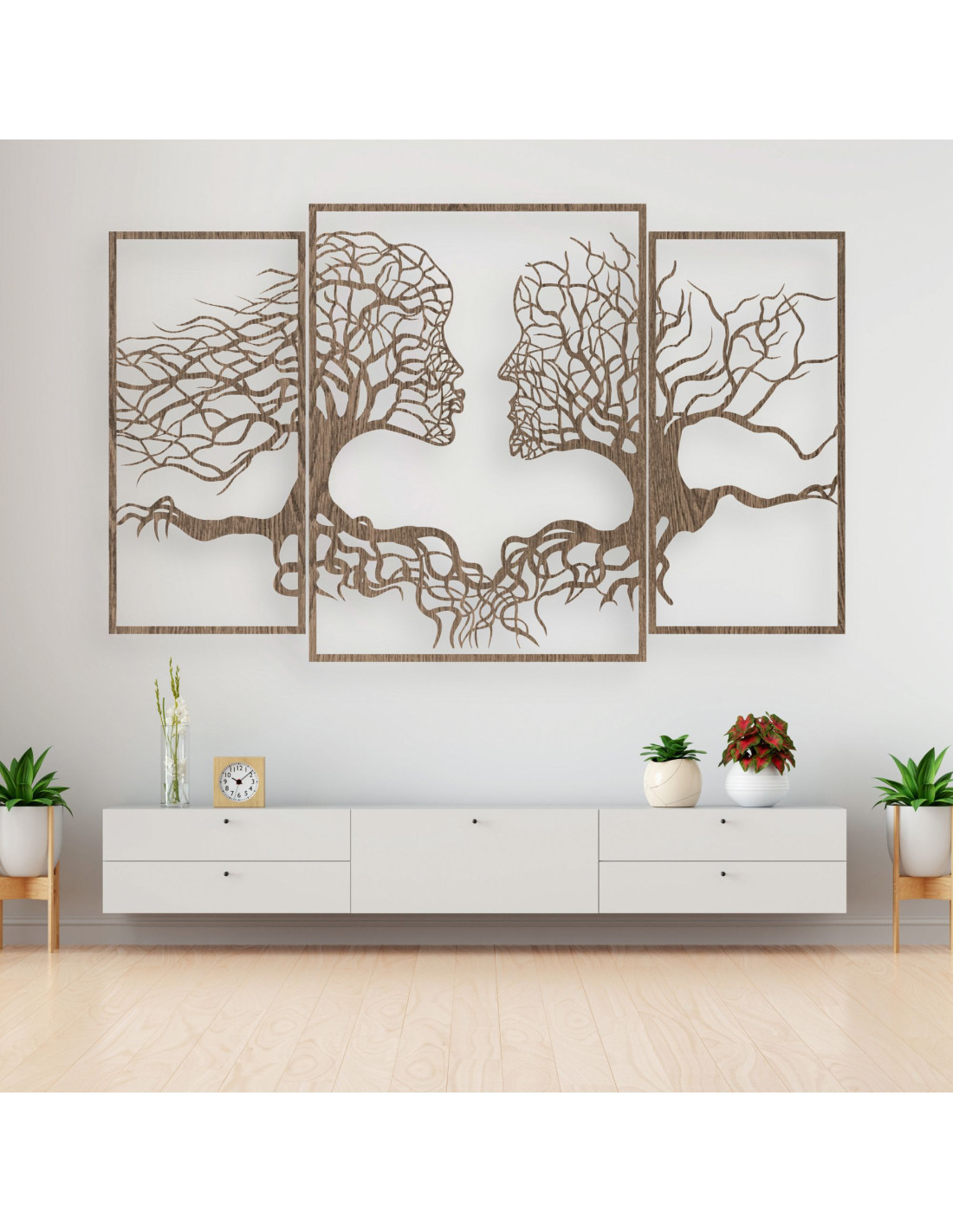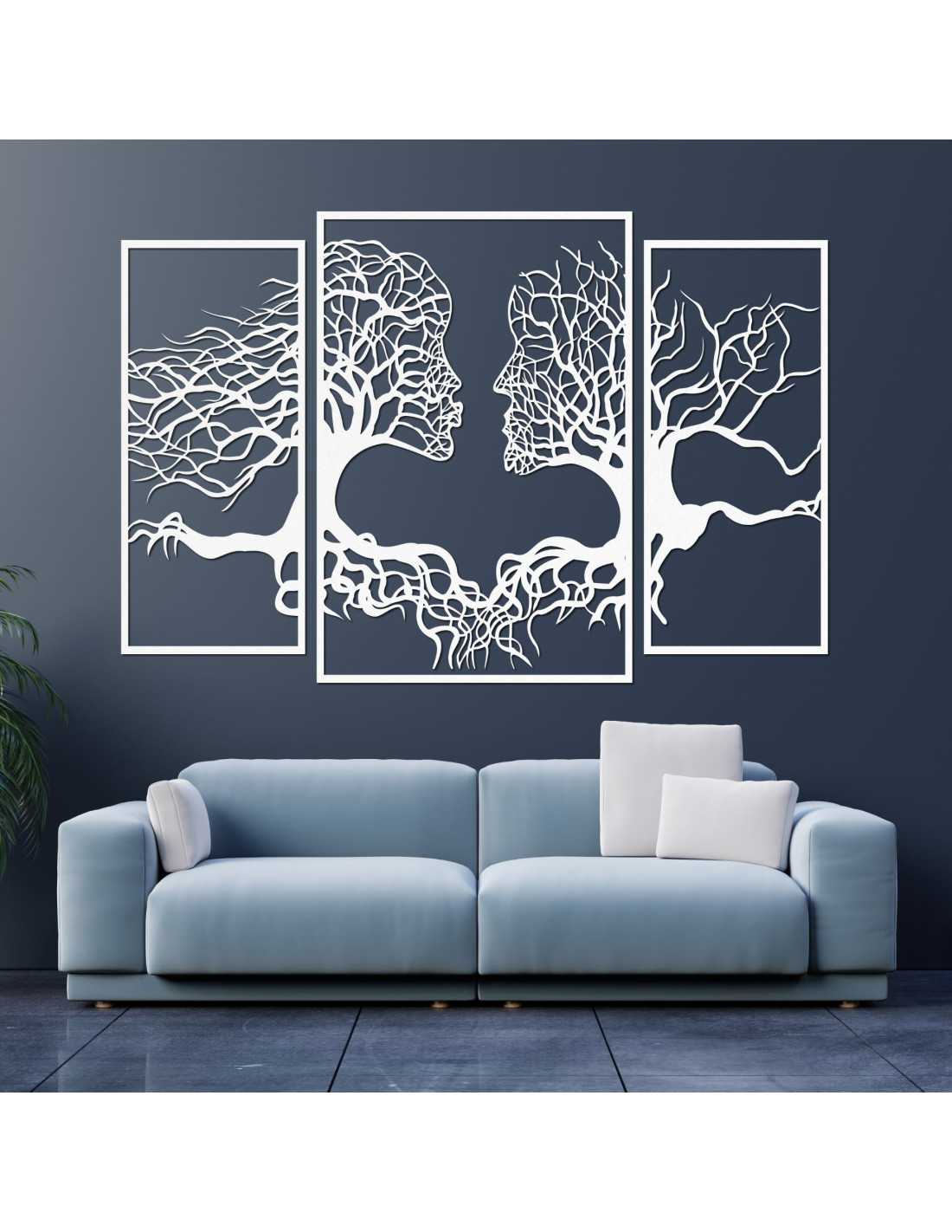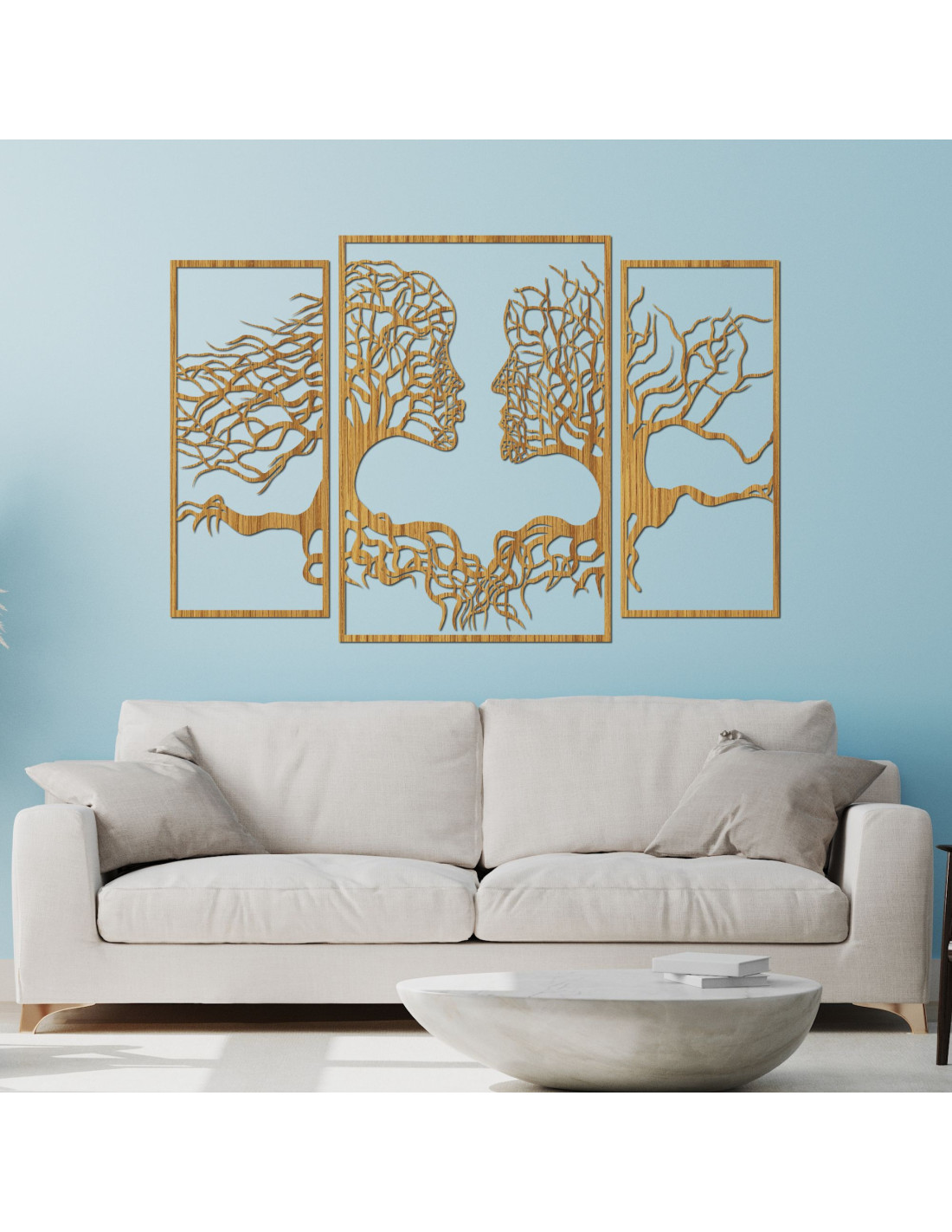 Trzyczęściowy obraz ukazuje wyjątkową więź między człowiekiem a naturą, gdzie sylwetki drzew naturalnie komponują się z ludzkimi twarzami . Delikatna kompozycja ma harmonijny charakter i zachęca do refleksji nad naszą relacją z naturą i ze sobą nawzajem.
