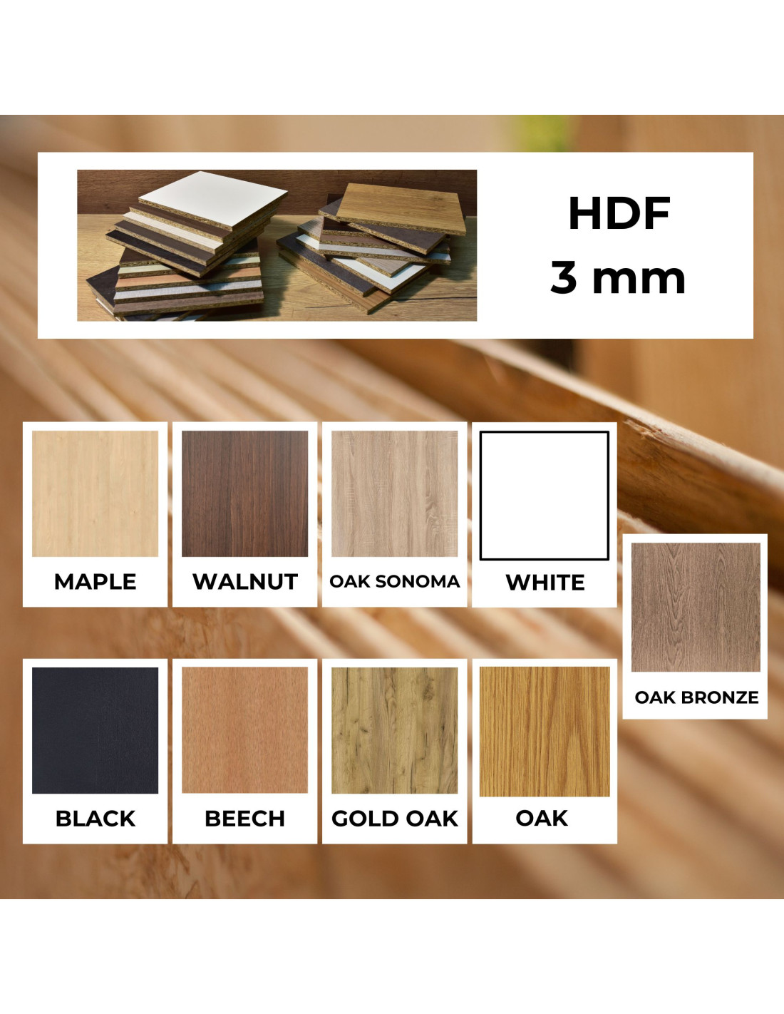 Sklejka jest wykonana z cienkich warstw drewna topolowego / HDF jest produkowana przez prasowanie różnych włókien drzewnych.