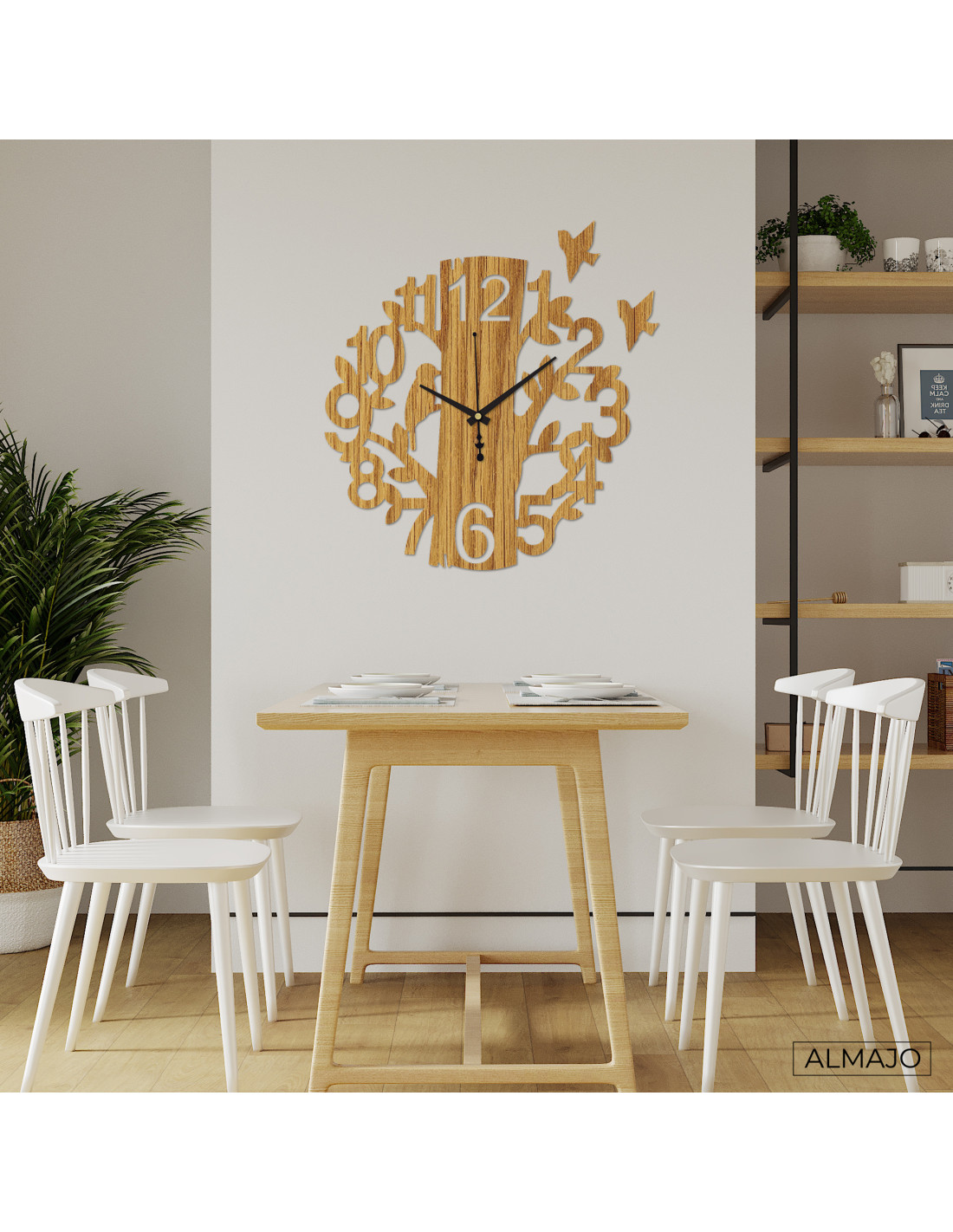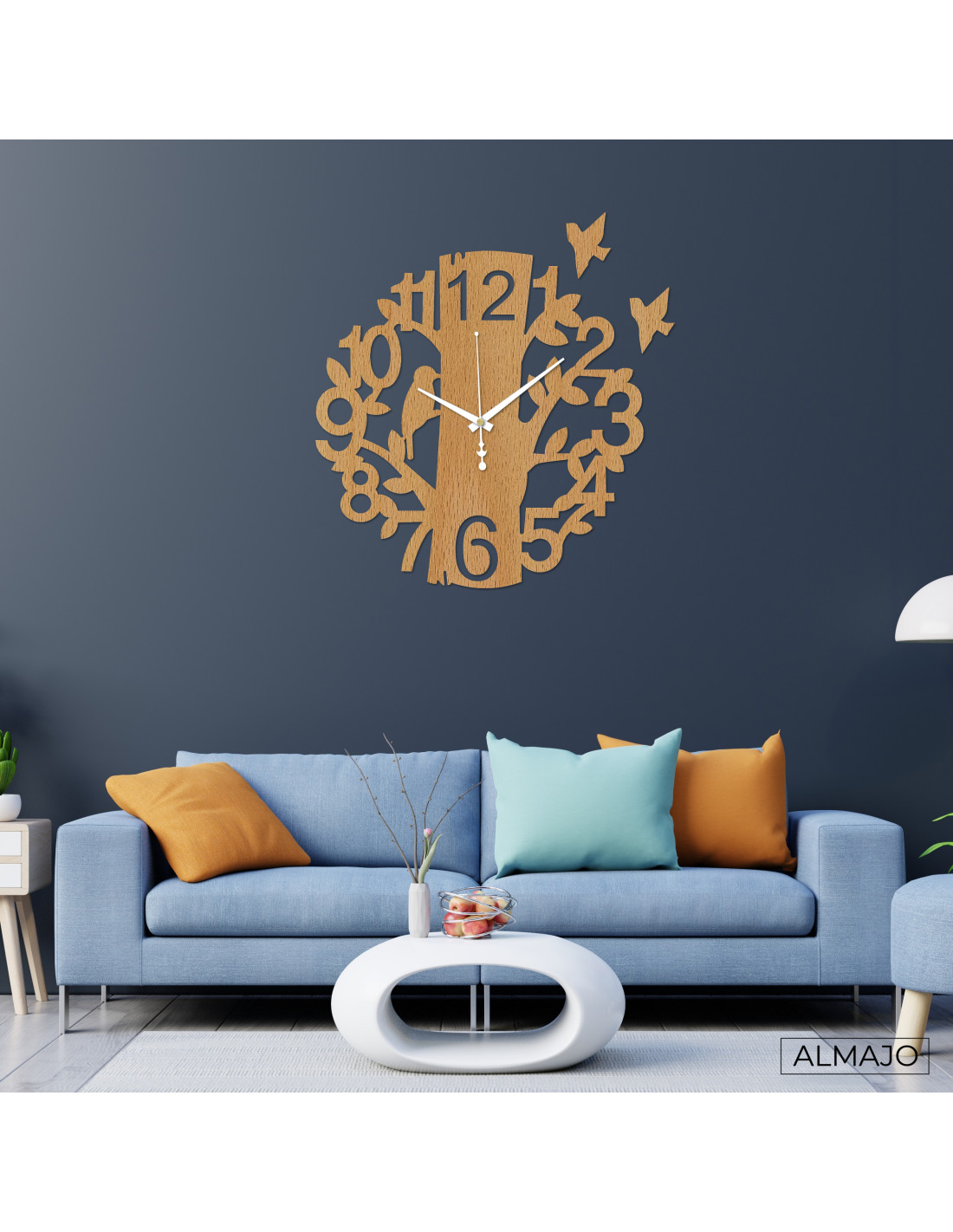 Bird Clock to drewniany zegar ścienny łączący precyzyjne odmierzanie czasu z naturalną estetyką.