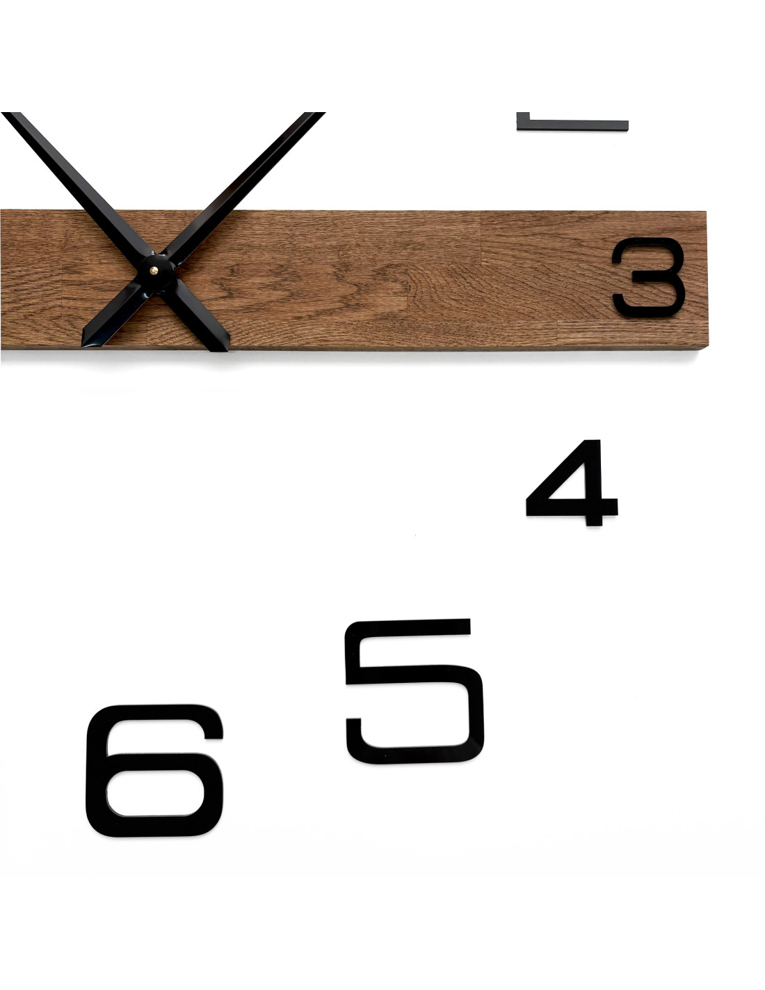 Każdy zegar wykonany jest z litych paneli dębowych , które najpierw są precyzyjnie wycinane przy użyciu technologii CNC, nadając im pożądany kształt i rozmiar.