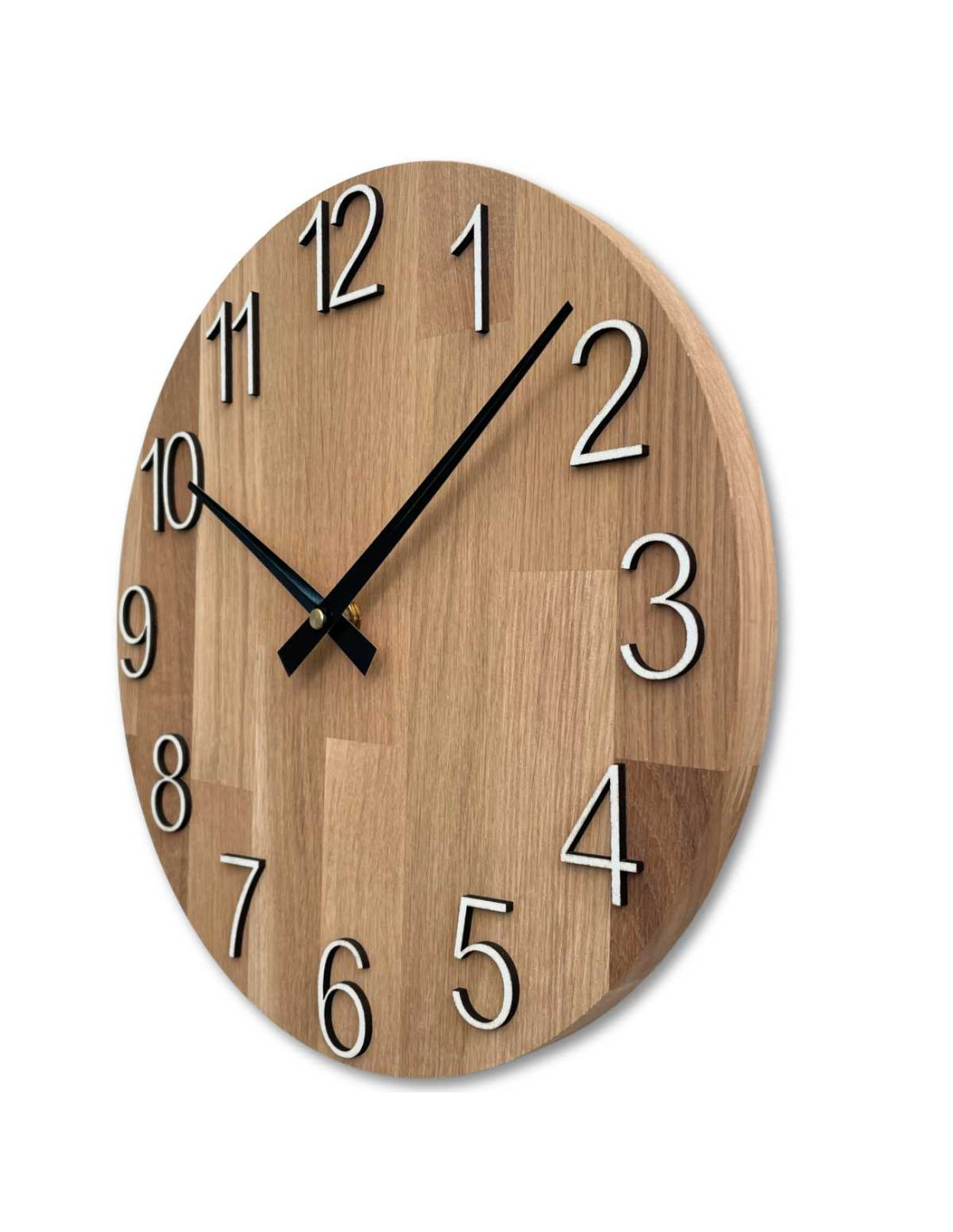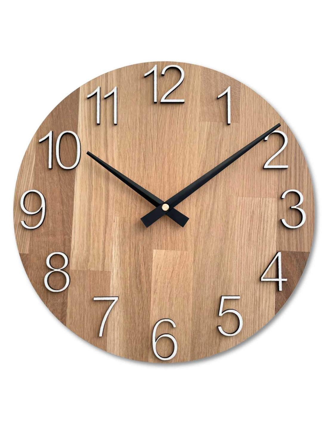 Elegancki zegar ścienny z litego dębu - czarne wskazówki | RODRA