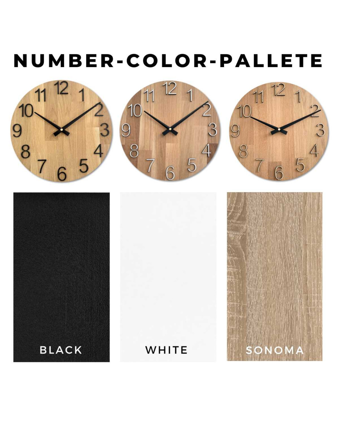 Każdy zegar wykonany jest z litych paneli dębowych , które najpierw są precyzyjnie wycinane przy użyciu technologii CNC, nadając im pożądany kształt i rozmiar.
