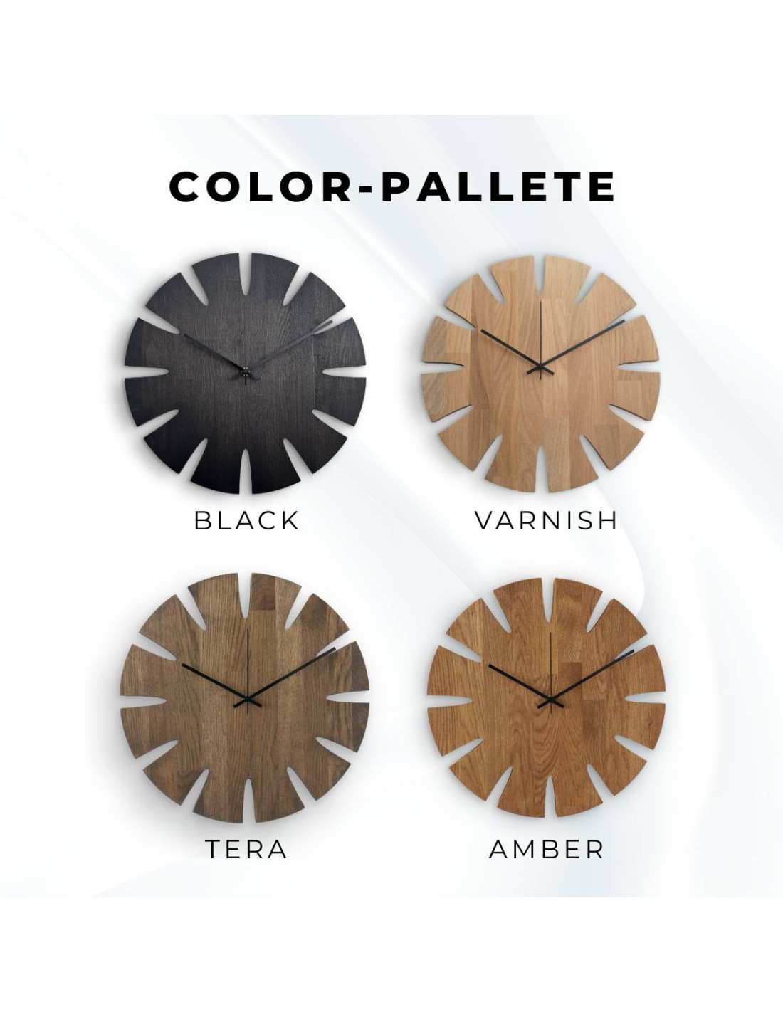 Każdy zegar wykonany jest z litego drewna dębowego , precyzyjnie wycinanego przy użyciu technologii CNC.