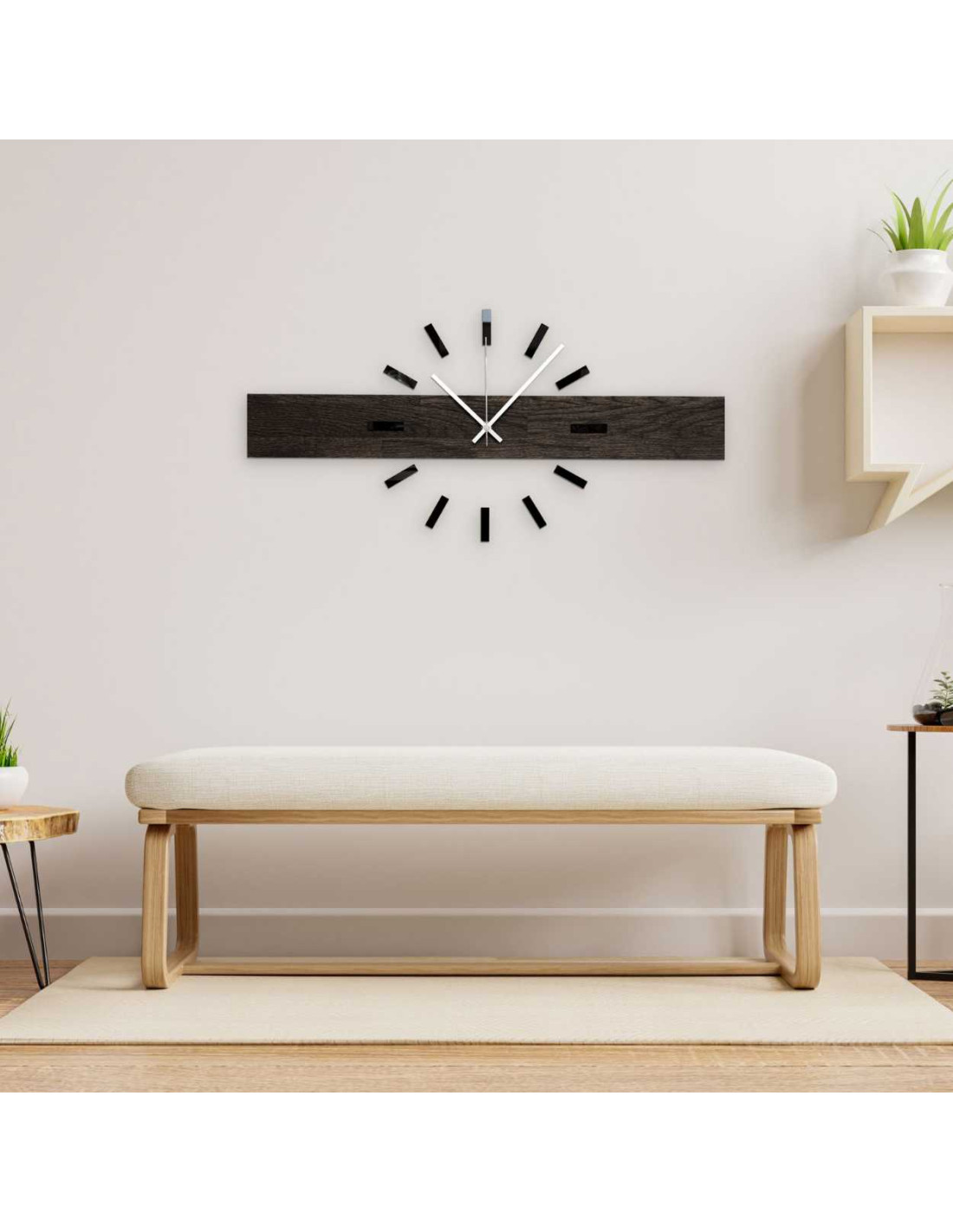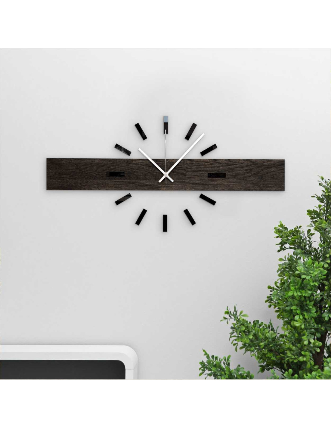 Ręcznie robiony poziomy zegar ścienny z dębu - CRYSA