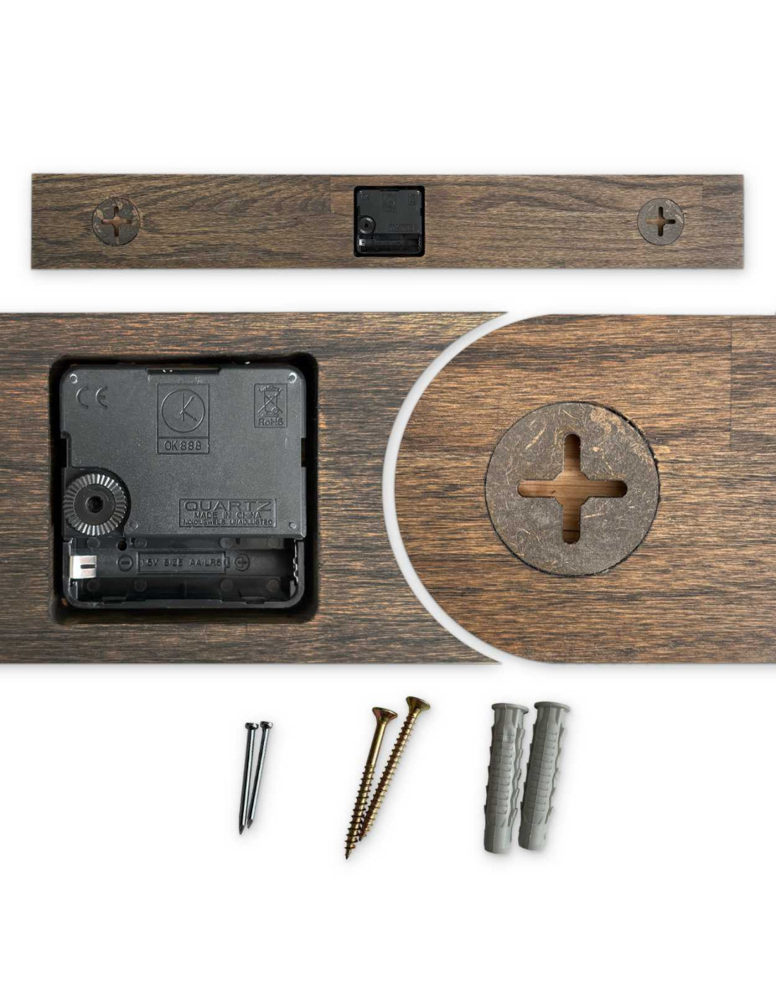 Na koniec montujemy wysokiej jakości mechanizm kwarcowy wraz z metalowymi wskazówkami w eleganckim kolorze.