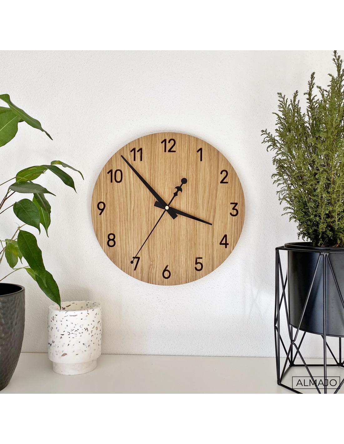 Ten ręcznie wykonany zegar ścienny z dębowej sklejki to wyjątkowy produkt słowacki, z którego każdy egzemplarz ma swój własny charakter. Ze względu na naturalną strukturę i odcień drewna, każdy egzemplarz jest nieco inny, co nadaje mu autentyczny i niepowtarzalny wygląd . Produkcja odbywa się ręcznie na Słowacji (UE), a ostateczny odcień może się nieznacznie różnić w zależności od naturalnego usłojenia drewna.