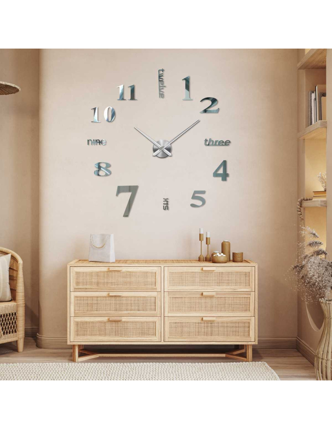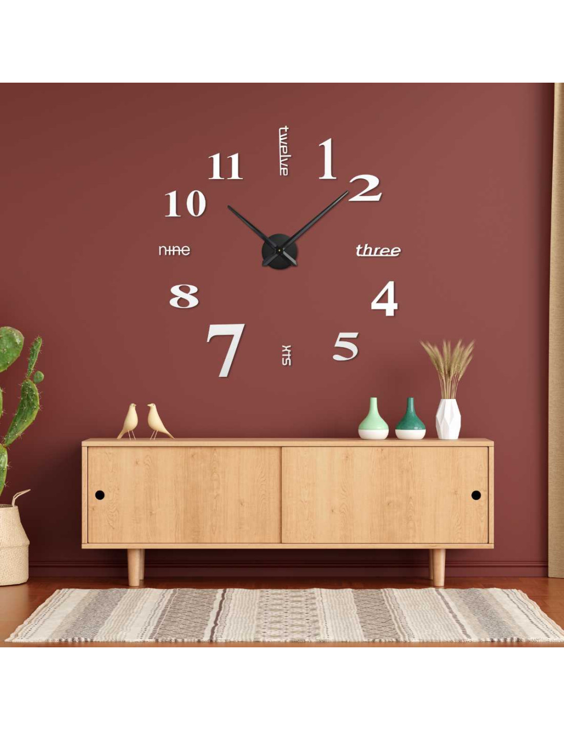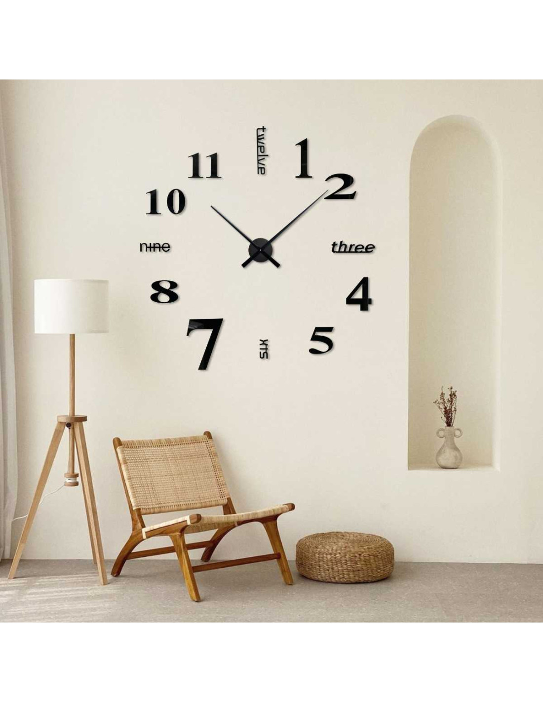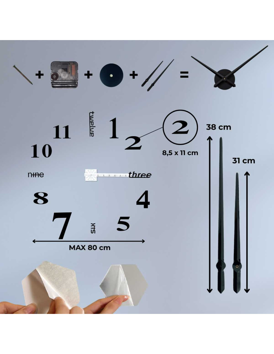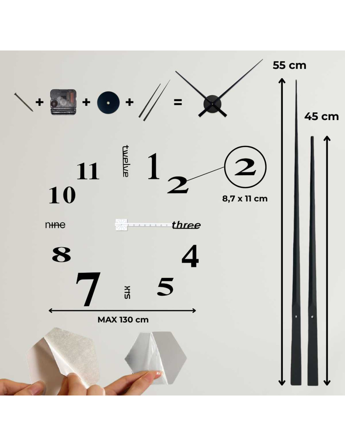 Ten nowoczesny zegar łączy w sobie elegancki , minimalistyczny design , trójwskazówkowy mechanizm z cichą i płynną pracą oraz łatwy montaż bez wiercenia .