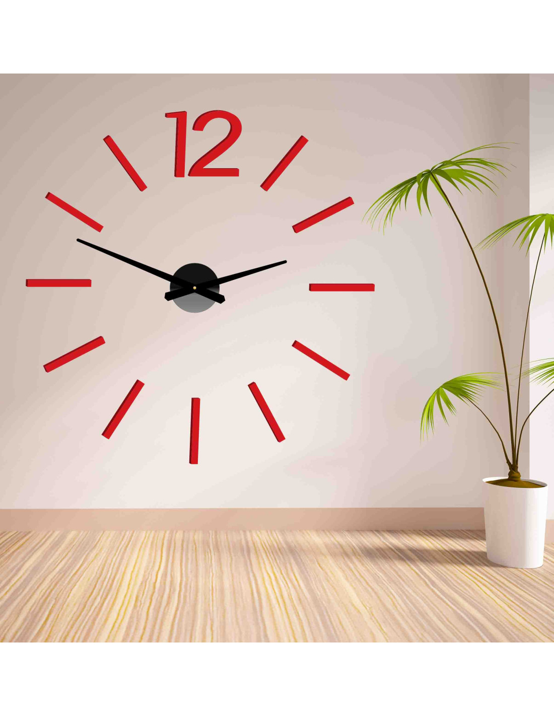 Dzięki minimalistycznemu podejściu, które charakteryzuje się czarnymi wskazówkami na czerwonym tle, zegar ten został zaprojektowany tak, aby pięknie pasował do nowoczesnych wnętrz. Wolne od zbędnych ozdobników i detali, czyste i wyraźne linie są zachęcające i przyciągają uwagę, nie rozpraszając jej.